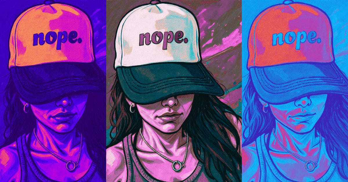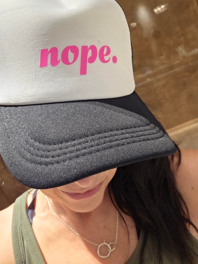 P.S. I made my graphic today from a selfie with my Nope hat — my girlfriend makes these and a bunch of other great ones (FCK ICE!), find her on IG to get one for yourself.